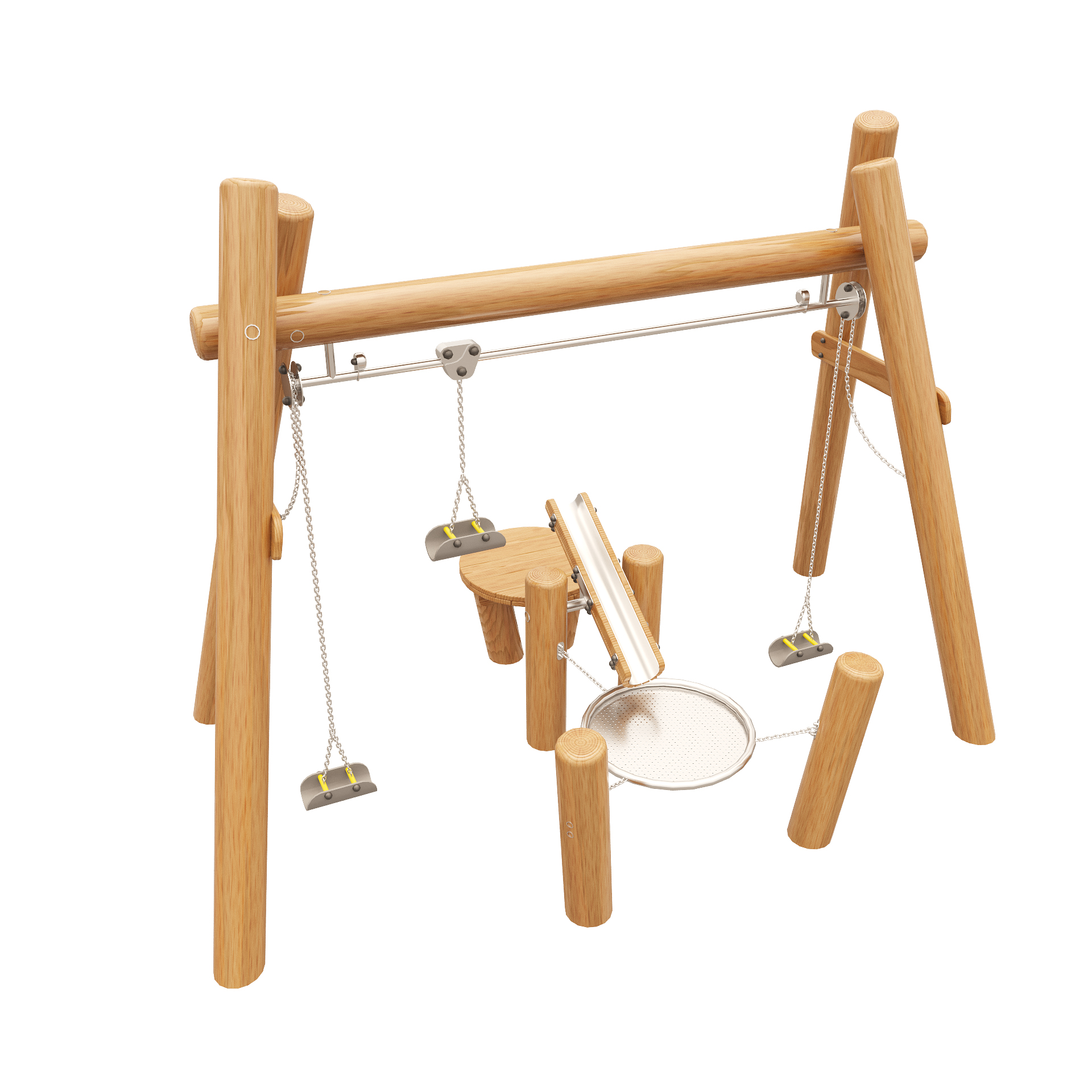 Мы предлагаем продуманные системы для игр и спорта: от компактных конструкций для небольших дворов до масштабных игровых городков с множеством элементов. В состав комплексов входят башни, переходы, лестницы, горки. Деревянные горки — один из самых популярных элементов. Мы предлагаем скаты разной высоты и конфигурации. Пластиковые спуски легко моются и безопасны, деревянные опоры придают конструкции устойчивость. Деревянные качели представлены одиночными и групповыми моделями, качели-гнездами, балансирами. Прочные канаты и цепи выдерживают интенсивное использование.