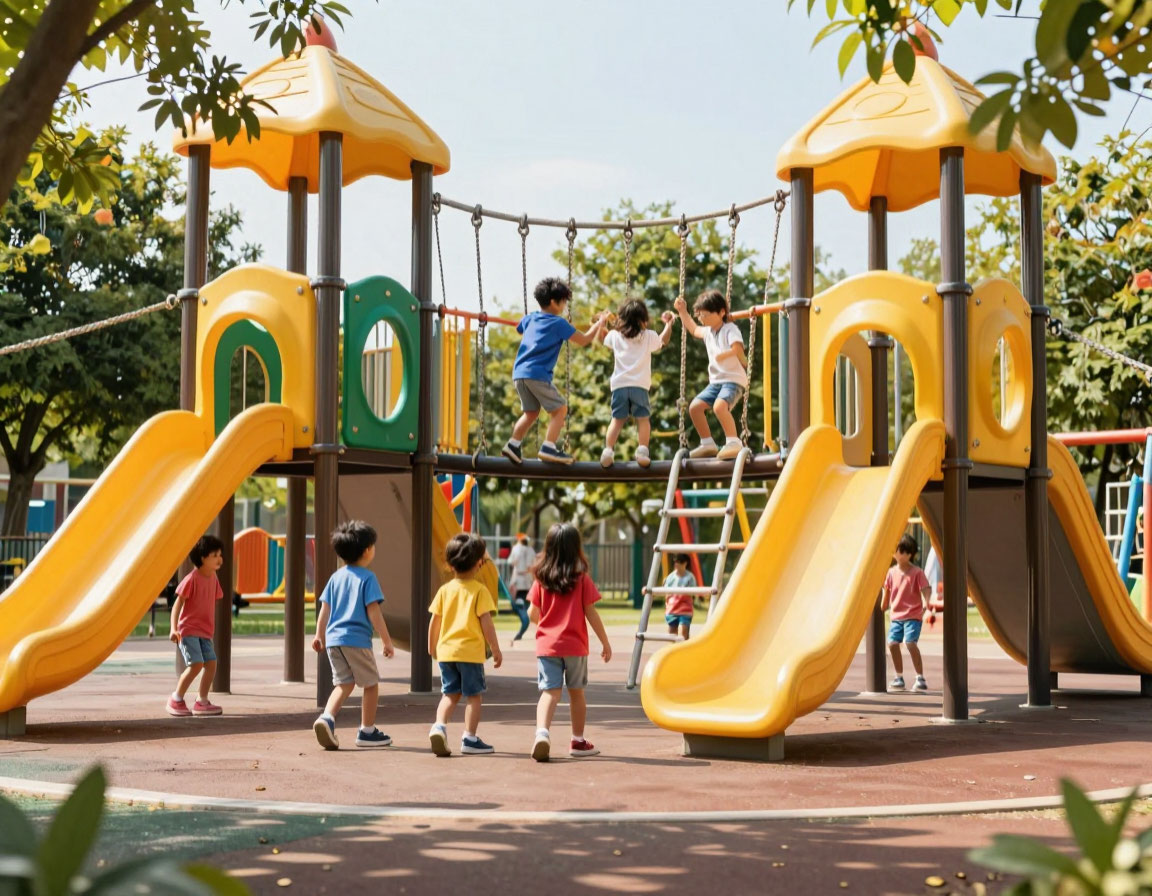 Это стимулирует проприоцепцию (ощущение собственного тела в пространстве) и заставляет мозг ребенка постоянно решать логические задачи: куда поставить ногу, как распределить вес. В 2026 году такие площадки ценятся за высокую визуальную прозрачность, которая не перекрывает архитектуру современных ЖК и позволяет родителям контролировать ситуацию дистанционно. Используются канатные комплексы для детских площадок повсеместно: от дворовых территорий до масштабных спортивных зон и игровых кластеров в торговых центрах. Они органично дополняют спортивные площадки, превращая их в универсальные места для активного отдыха.